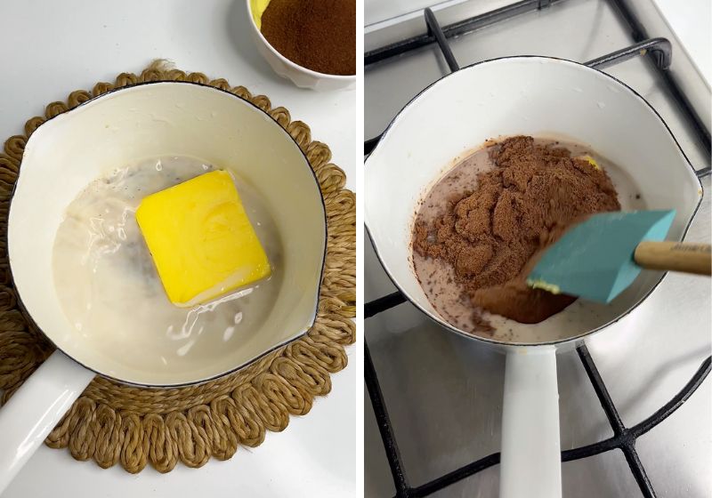 3)Take butter, milk in a sauce pan. Heat the mixture till the butter melts.