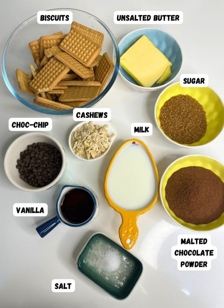 Biscuits – You should use any biscuits of alternative. Leftover biscuits will be utilized in this recipe too. Depending on the kind of biscuits you employ, the taste will vary. Digestive biscuits, Marie gold (you may must add more sugar), Milk Bikis, Chocolate chips biscuits or Ginger biscuits.