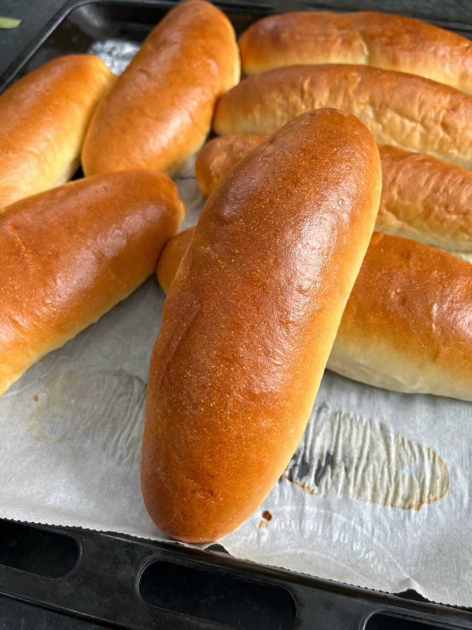 Hot dog buns are a form of bread specifically designed to carry hot dogs or sausages. It’s an elongated buns or rolls in Shape. These rolls are so fluffy and squishy with a slight chewy texture to it. Hot dog buns are constituted of ingredients just like regular bread, corresponding to wheat flour, water, yeast, sugar, salt.