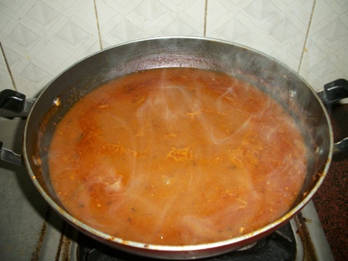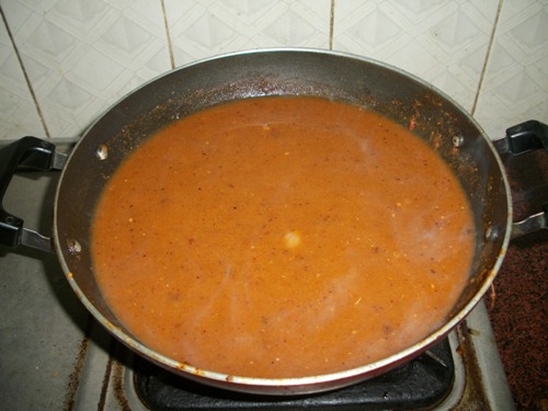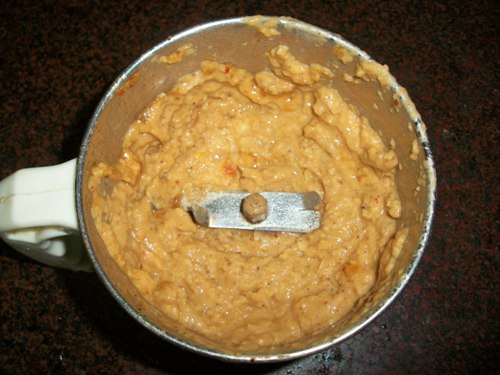 - Take cooked chana in a blender and puree it. Add it to the curry. Mix well.