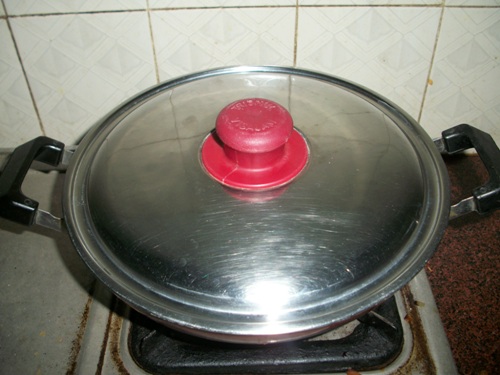 - Add in cooked chana together with cooked water, mix well. Season with salt and sugar.