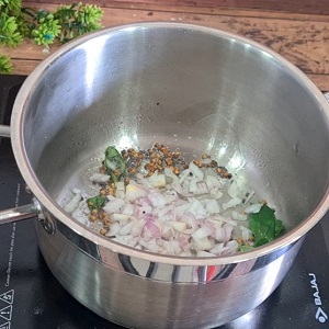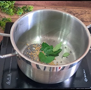 Spices : mustard seeds, fenugreek seeds (methi), turmeric powder, sambar powder