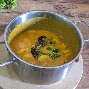 Other ingredients : curry leaves, asafoetida (hing), oil , tamarind, jaggery, salt