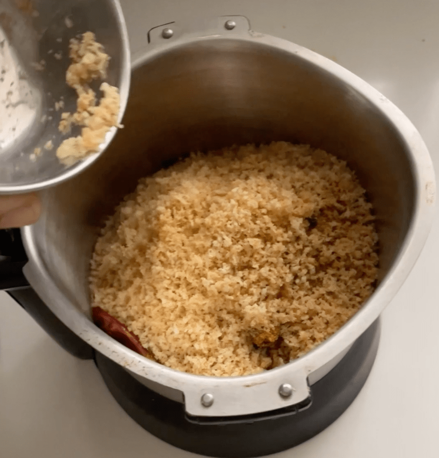 • Add within the powdered sambar masala. mix well. Add in cooked rice and dal. Mix well.