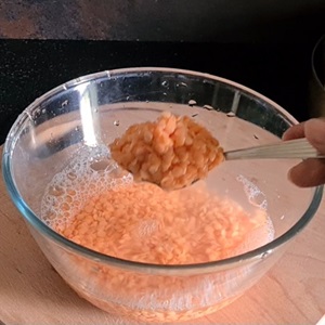 Drain the water and transfer to a pressure cooker. Add 1 ½ cups of water. Add 1 tsp turmeric powder and salt. Pressure cook for 3 to 4 whistles.