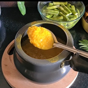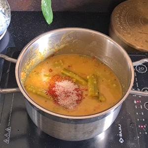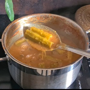 Add water if required to regulate the consistency of aamti. Mix well.Cover and cook for five to 7 minutes.