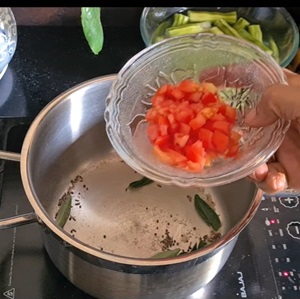 Heat a pan and add mustard seeds . When the seeds start crackling, add cumin seeds, curry leaves, asafoetida and saute for few seconds.