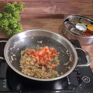 Add 2 to three teaspoons of water to forestall the masalas from burning. Mix well.