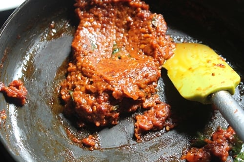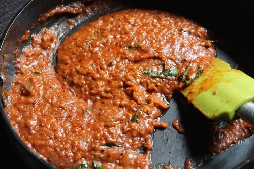 - Add in chutney and cook till oil separates.