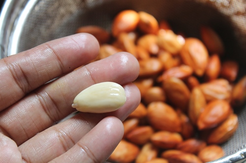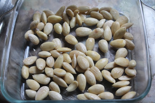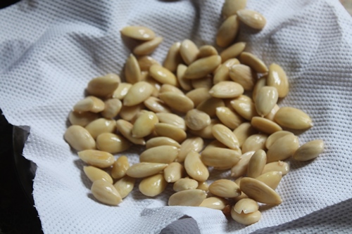 7)Discard the peels from the almonds. Reserve the blanched almonds.