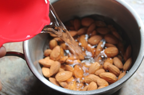 2)Add in water over the almonds.