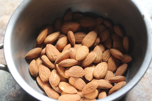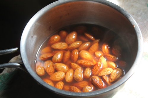 4)One the badam involves a full boil. Remove the almonds from heat and put aside for quarter-hour.