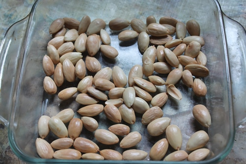 10)Now the almonds are toasted completely. Remove the almonds from oven and funky completely for half-hour.
