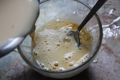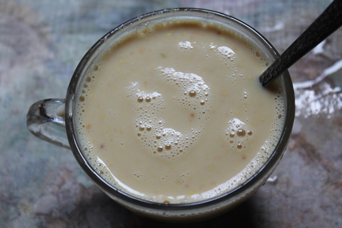 20)Pour 1 cup of hot milk over the badam drink powder. You should utilize any nuts milk like almond milk, soy milk for vegan option.