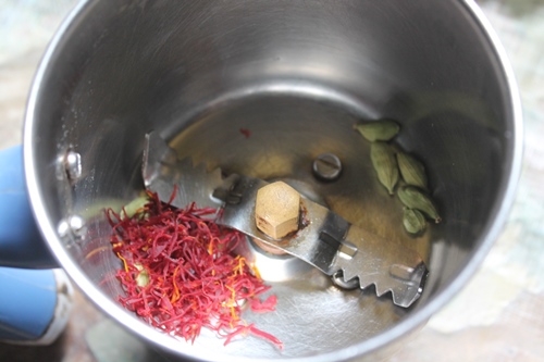 11)Take saffron and cardamom pods in a blender.