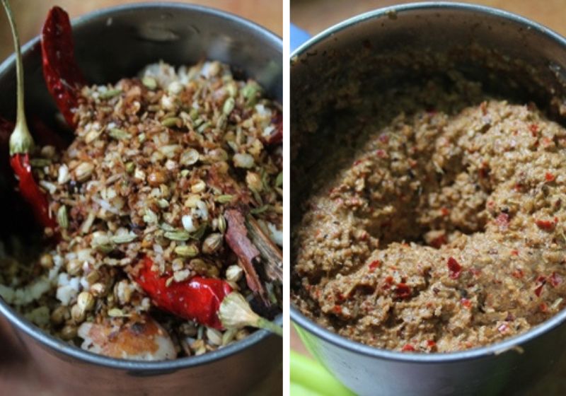 - Coconut – coconut is roasted and made into paste which helps with the thickness.