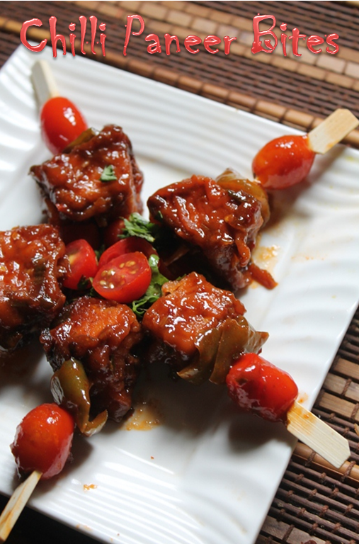 That is the chilli paneer bites which i served for maha birthday and everybody loved it. It was tangy, spicy and packed a punch within the party.