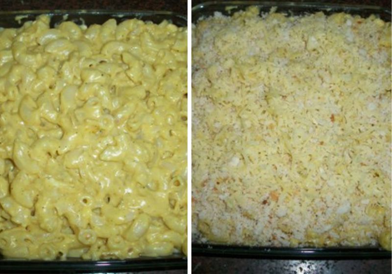 6)For baking mac and cheese. Transform the mac and cheese right into a baking dish, sprinkle top with breadcrumbs and more cheese.