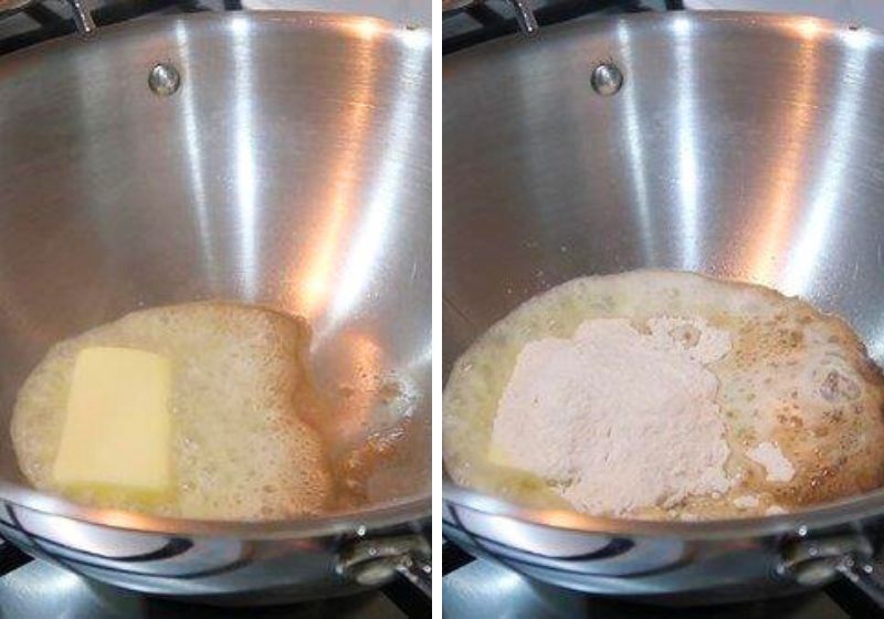 2)Heat butter in a big cooking pot. Add in all purpose flour into the melted butter. For each 2 tbsp of butter you might have to make use of 2 tbsp of plain flour.