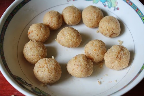 13)Roll the ladoos in coconut.