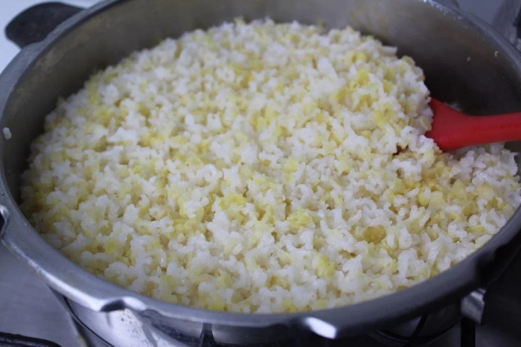 - Now add the rice mixture on this and blend well. Stir for five mins on a low flame so that each one flavours gets united. You can add some grated coconut at this point and blend well.