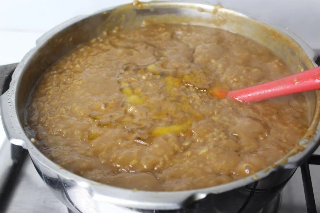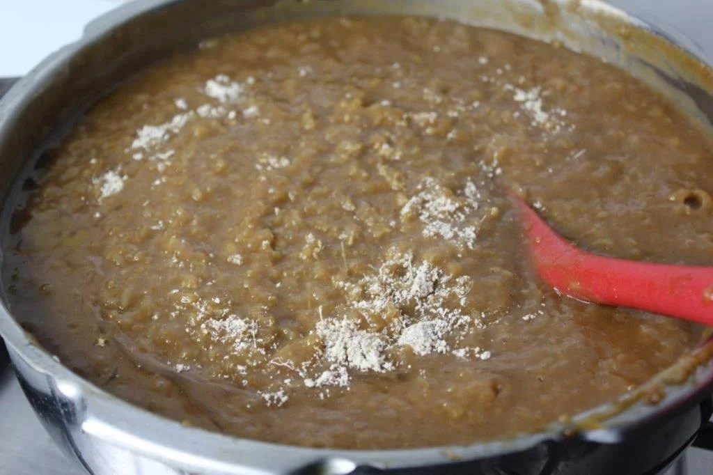 - You can cook the rice and dal in water and add a cup of thick milk later while adding jaggery water.