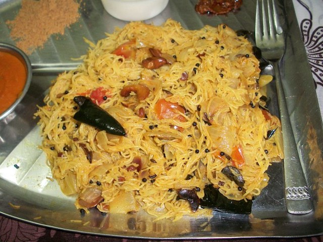 Semiya or vermicelli is a very good source of carbohydrates and energy that has a comparatively low cholesterol content. I take advantage of roasted semiya for fluffy non-sticky end product even when it is totally cold which makes an ideal lunch box dish.